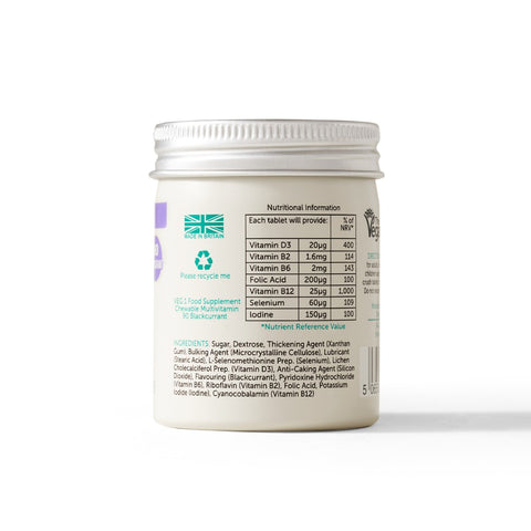 La Vitamine B12 de la marque VEG1 est un complément alimentaire, conçu par des vegans pour des vegans, indispensable pour maintenir l'équilibre des personnes végétaliennes. Comprimés à croquer, goût cassis.